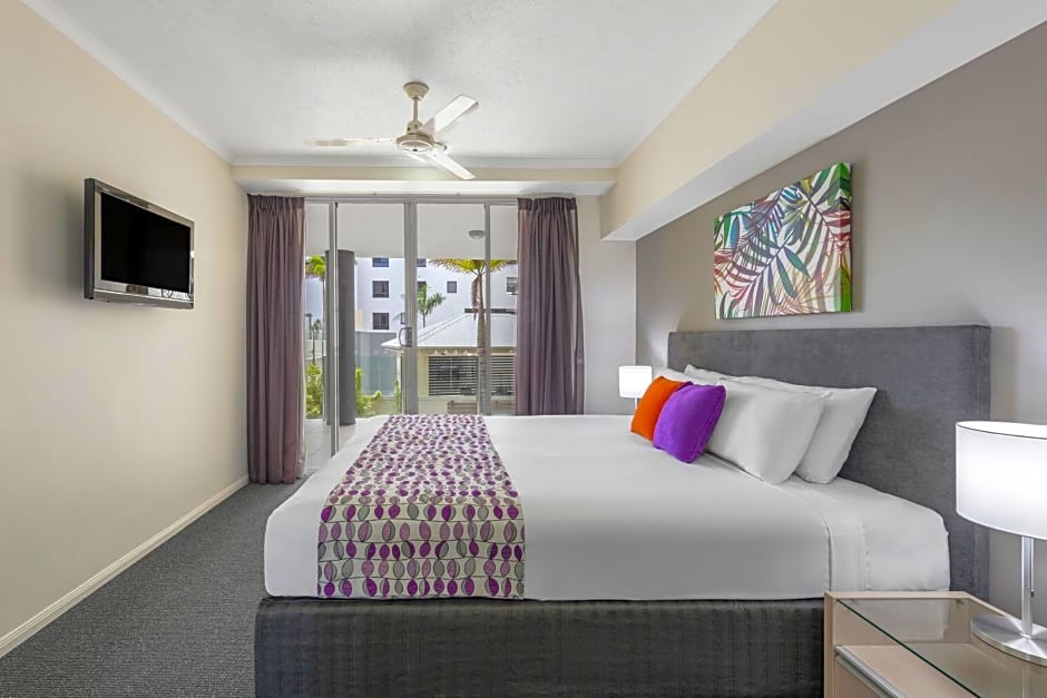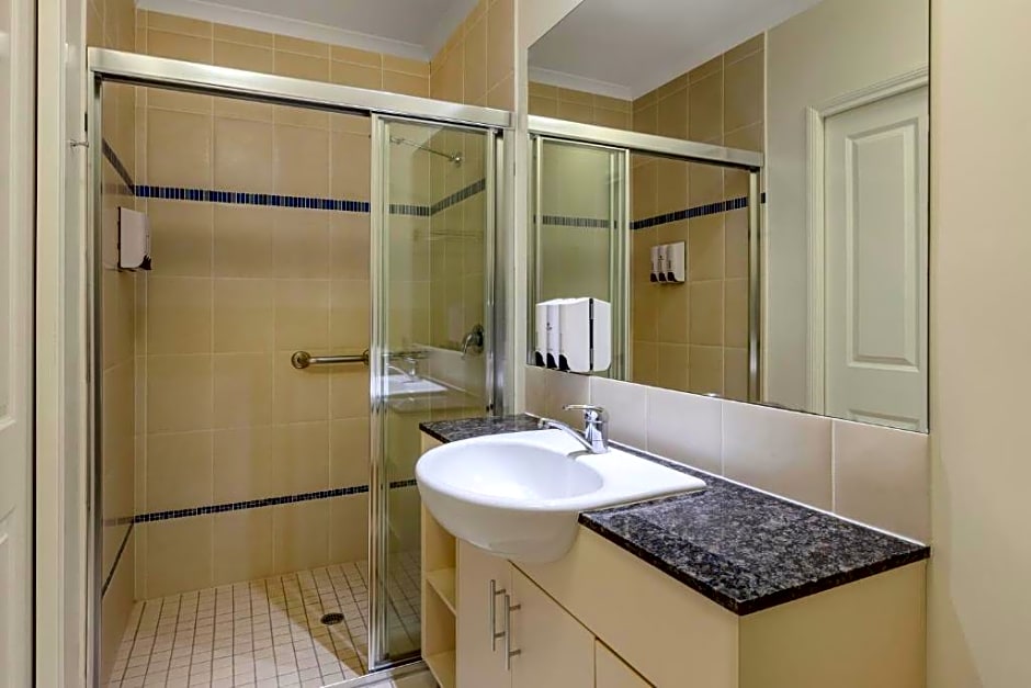 Executive Two Bedroom Dual Keyed Apartment is 538 square feet and includes either a king-size bed 150-183 width or a queen-size bed 150-154 width.